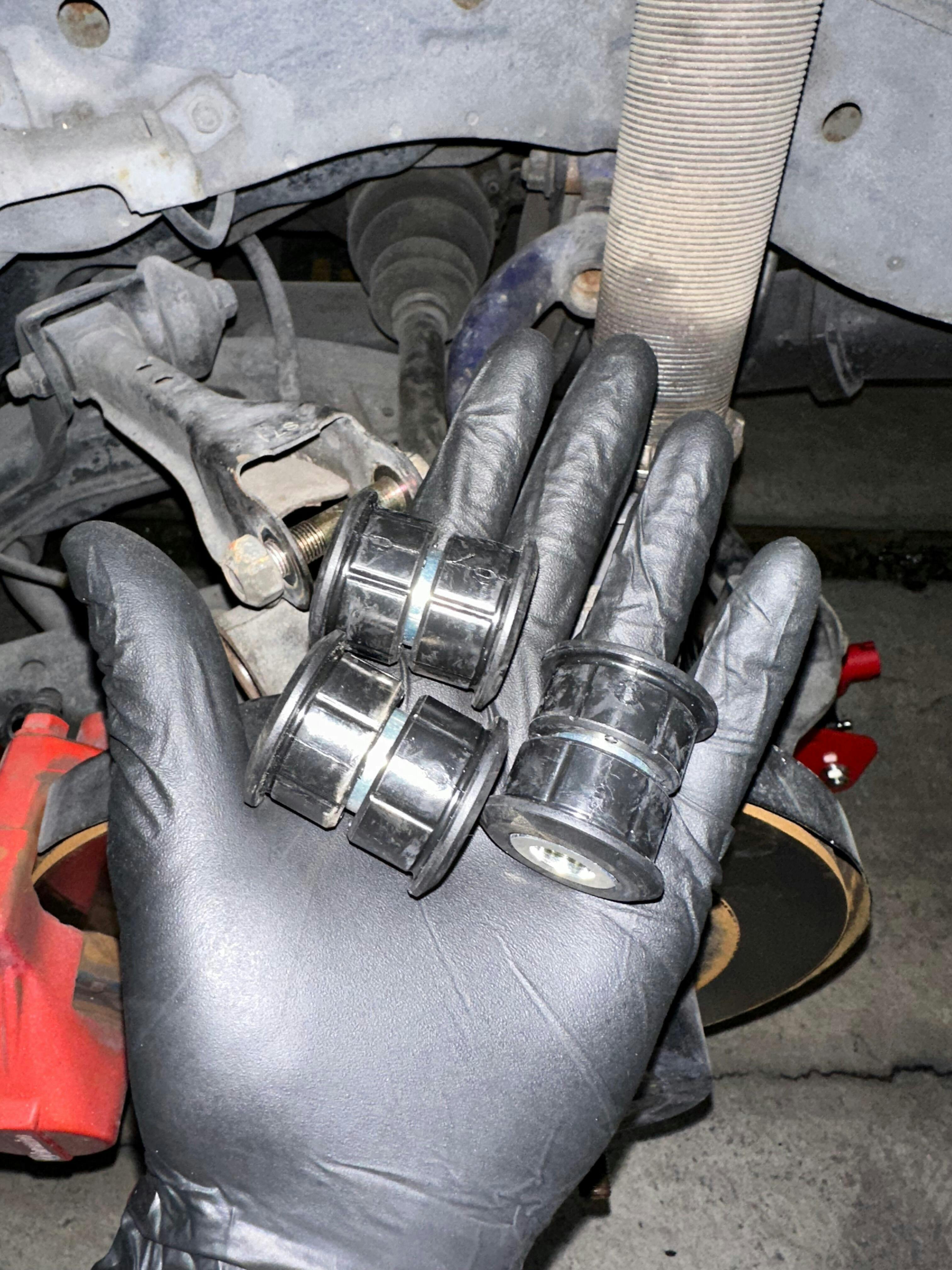 However, after an update - these bushes can also be used to replace the OEM rubber bushes for camber and traction arms (Subframe side).