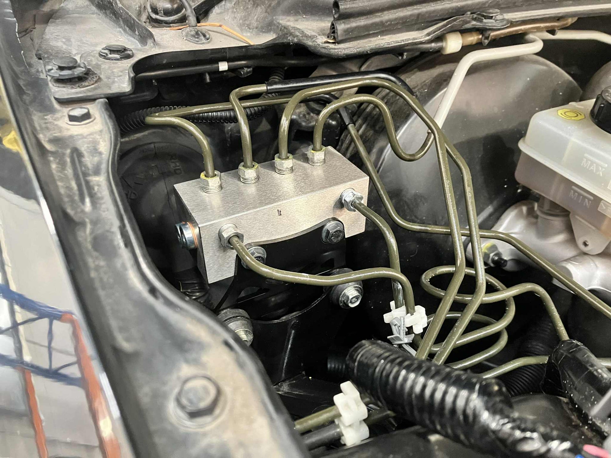 Which is why we have replaced the OEM unit with the GKTECH ABS Delete manifold block, which not only removes the ABS but allows the OEM brake system to accept the in-line master cylinder without any issues.